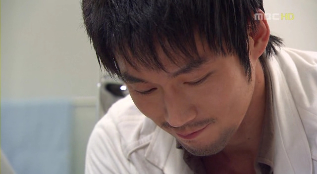 然後觀眾看到基書為了春天重回漁村、基書口裡喊著"大媽"卻心疼的摟緊找不到女兒又發著高燒的永新。